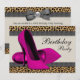 Sapatos de salto alto rosa vibrante e convite de festa de aniversário estampado com onça rosa. Este convite de festa com onça rosa funciona bem para despedida de solteira, chá de noiva, aniversário de mulher de 21, 25, 30, 35, 40, 45, 50, 55, 60, 65 anos e qualquer outra idade. Este convite de aniversário estiloso com onça rosa também funciona bem como convite de festa de debutante ou convite de Quinceanera e é facilmente personalizado para o seu evento bastando escolher o botão "Personalize!" para começar a adicionar os detalhes do seu evento, estilo de fonte, tamanho e cor da fonte e texto. Por favor, note que todos os cartões e convites que você encontrará no Zazzle são gráficos impressos sem pedras, laços, relevos ou peças adicionais.