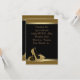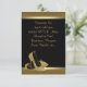Convite RSVP de sapatos pretos com brilho dourado de salto alto.