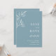 Convite Salvando a data de casamento azul botânico