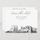 Convite de save the date moderno em preto e branco de Myrtle Beach. A frente apresenta um esboço impressionante, definindo o tom perfeito para o dia do seu casamento. Adicione sua própria foto no verso e personalize o texto para torná-lo seu. Entre na ferramenta de design da Zazzle para personalizações adicionais de design.