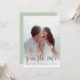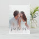 Sua Foto do Noivado 5x7 é apresentada com um texto simples e elegante de letra caligráfica manuscrita, "Salvar a Data" e seus nomes, data do casamento e local. Você pode mudar facilmente a cor ou o design de fundo.