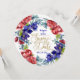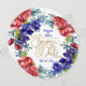 Arranjo floral aquoso de flores azuis/púrpuras profundas complementado com flores vermelhas. Salve a Data em um guião de ouro caprichoso com corações desenhados à mão. Data, nomes e outras informações são personalizáveis.