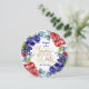 Arranjo floral aquoso de flores azuis/púrpuras profundas complementado com flores vermelhas. Salve a Data em um guião de ouro caprichoso com corações desenhados à mão. Data, nomes e outras informações são personalizáveis.