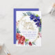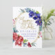 Arranjo floral aquoso de flores azuis/púrpuras profundas complementado com flores vermelhas. Salve a Data em um guião de ouro caprichoso com corações desenhados à mão. Data, nomes e outras informações são personalizáveis.