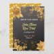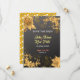 Convite de SAVE THE DATE cartão de convite para o casamento dos seus sonhos. O cartão é desenhado com flores douradas e design de pétalas em um fundo preto gradiente. Você também pode baixá-lo instantaneamente e compartilhar em um ziff.