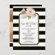 Cansado de temas de casamento rústicos e com saudades de uma elegância clássica, atemporal e bonita? Tivemos você em mente quando desenhamos este fundo listrado moderno em preto com uma fina borda de brilho dourado falso e branco (mas você pode mudar a cor do fundo branco usando a ferramenta de escolha de cor em "personalizar"). Uma moldura Art Déco com cantos chanfrados é em dourado, branco e preto. Um arranjo floral simples e elegante, pintado à mão, com Freesias e rosas e botões de rosa variados, com uma folha de suculenta cinza menta suave para um toque moderno. Romântico. Simples. Na moda. A fotografia pode ser facilmente trocada usando o campo de modelo - basta ajustar o tamanho para cima ou para baixo ao seu gosto. Direitos autorais de Audrey Jeanne Roberts