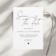 Anuncie seu dia especial num estilo atemporal com este Cartão de Save the Date Minimalista Preto e Branco. Projetado com tipografia elegante e uma caligrafia moderna, este cartão oferece uma maneira sofisticada e elegante de compartilhar a data do seu casamento com familiares e amigos.