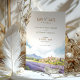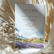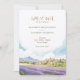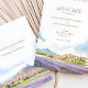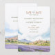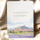 Apresente o seu casamento com este cartão romântico de "Salvar a Data", com uma representação impressionante de Provença, França. O cartão combina lindamente matizes pastéis macios de lavanda, azul-céu e verde-terra. A serena trabalho de arte capta o charmoso campo francês, cheio de colinas rolantes e campos de lavandas vibrantes, evocando um senso de romance e tranquilidade. Ideal para casais planejando um casamento de destino, este cartão define o tom perfeito para seu dia especial. Personalize com seus detalhes de casamento para criar uma primeira impressão memorável.