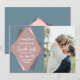 Elegante, chique e moderno com um toque retrô, contorno de diamante geométrico em rose gold falso impresso em azul empoeirado, mauve, rosa e cinza carvão diamante recortado, cartão de Save-the-Date de casamento. Este design clássico e sofisticado é perfeito para o casal que se casa moderno e elegante. Personalize com sua própria mensagem na frente, bem como um monograma inicial personalizado no verso. Todo o design de impressão de foto.