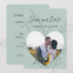 Design moderno e colorido de salvar data de casamento em verde menta com moldura de foto em forma de coração, texto personalizado e cores de fundo. Entre em contato com o designer para consultas de design