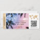 Avião Dourado de Casamento de Praia de Destino Embarque Bilhete de Passagem Salve a Data com Ícone de Navio de Cruzeiro com folhas tropicais. Adicionar seu código QR