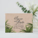 Convite Salvar data para casamento verde com palmeira trop