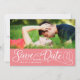 O anúncio do seu casamento. Use sua imagem horizontal de cheio com "Salvar nossa Data" em um plano de fundo colorido. Personalize seus nomes e data na frente e atrás.