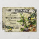 PALETA DE CORES: amarelo, bege, creme, laranja, verde e preto. DESIGN: Este conjunto de convite de casamento inspirado em tipografia vintage antiga tem um conjunto completo de produtos e foi criado em várias paletas de cores. Usando ornamentos decorativos de impressora vintage da era barroca vitoriana, misturados com arte floral de cartão-postal, incluindo lírio-do-vale, violetas inglesas, rosas e flores de boca-de-leão. Um par de pássaros cantores amarelos com uma gaiola de pássaros aberta completa a frente do convite. O verso inclui seu texto, que é facilmente personalizado usando os campos de modelo para personalização. Há mais desenhos de floreios espiralados, trabalho de linha espiralada, bordas envelhecidas e desgastadas e a gaiola de pássaros e rosas. Esta é uma mistura de elementos de design vintage e fundos de aquarela originais graficamente projet