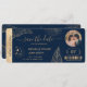 Bilhete Dourado de Passagem de Praia de Destino Salve a Data com ícone de coração e de avião com folhas tropicais. Adicionar a sua fotografia