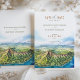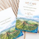 Anuncie seu casamento de destino tropical no Havaí com este cartão maravilhosamente ilustrado "Salve a Data". Apresentando uma vista de cor d'água impressionante de paisagens exuberantes do Havaí, esta design captura a beleza natural da sua localização de casamento. As matizes suaves e a tipografia elegante fazem deste cartão a forma perfeita de convidar os seus convidados a marcar os seus calendários para o seu dia especial. Ideal para casamentos de praia ou ilha, esta carta traz um toque de paraíso para a sua papelaria de casamento.