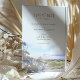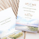 Faça o tom perfeito para o seu casamento na praia com estes Cartões salve a data elegantes. Apresentando trabalho de arte sereno costeiro, essas cartas retratam lindamente os tranquilos bancos externos da Carolina do Norte. A primeira mostra uma cena de praia impressionante com céus pastel macio e ondas suaves do oceano, enquanto a segunda captura uma calçada pacífica que se estende sobre pântanos exuberantes sob um céu azul claro. A delicada tipografia em tons de pêssego mole, verde-azeitona e bege arenoso adiciona um toque de sofisticação. Anuncie seu dia especial com essas cartas charmosas e agradáveis, perfeitas para uma celebração à beira-mar.