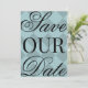 Convite Salve a Data em Xadrez Azul com fonte de caligrafia