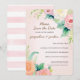Anúncio de noivado e aviso de data de casamento que podem ser facilmente alterados usando os campos de modelo fornecidos. Envie-os com antecedência, logo após o noivado, para que familiares e amigos queridos possam fazer planos para estar na sua celebração! Esta coleção foi criada a partir de pinturas originais em aquarela por Audrey Jeanne Roberts com um estilo solto e aquoso que é perfeito para casamentos contemporâneos românticos. Se você está planejando um casamento ao ar livre no jardim, um evento rústico country ou uma recepção elegante com tema floral, este conjunto de convites pode ser perfeito! Um design simples descentralizado tem um layout de texto moderno. Fácil de personalizar usando os modelos fornecidos. Rosas rosa, coral, pêssego e branco em pastéis suaves, juntamente com pequenos ramos de videira bege e flores silvestres taupe. No verso, há uma faixa rosa suave pintada à mão com imperfeições naturais desenhadas à mão. FUNDO: rosa concha suave pastéis gelados.
