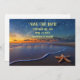 Salve a data! Uma bela praia, com uma estrela-do-mar, uma maneira bonita de pedir aos seus amigos e familiares para salvar a data do seu casamento! Feito para ser personalizado com suas informações.