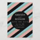Convite para Salvar a Data com Listras Rosa Preto Verde Mar