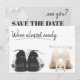 Estamos quase prontos... e você? Este convite de save-the-date doce e moderno dá um giro divertido no tradicional. Você pode personalizar o cartão com todos os detalhes do seu evento clicando no botão azul à direita da imagem.