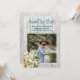 Salve os anúncios de fotos com fundo de madeira e buquê de lírios design. Os painéis brancos de madeira são o fundo do texto azul-esverdeado. Um grande buquê de lírios brancos enfeita o canto inferior do molde fotográfico. Este design também está disponível como um download instantâneo.