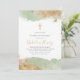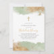 Um convite de batismo moderno com sálvia em aquarela e uma cruz com brilho dourado falso. O produto perfeito para o batismo ou batizado dos seus meninos.