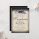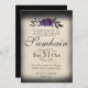 Esses convites de Samhain apresentam um fundo design de pergaminho de cor pálida com um gradiente de sombra preta ao redor das bordas. Uma decoração floral é colocada no topo com rosas e folhas de cinza roxas escuras. As informações da festa aparecem abaixo das flores em uma cinza escura, uma fonte elegante. Perfeito para qualquer celebração de Samhain ou Halloween.