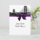 Skyline da Califórnia em São Francisco Encenou Veja 01 Invitation Suite Roxo - Chá de panela / Chá de casamento Convite Elegante, convites personalizáveis para chic e na moda com uma visão em preto e branco gravada do horizonte de São Francisco com a ponte de Porte do Ouro. Ele também apresenta um arco de aparência de uma púrpura. Este produto faz parte de um conjunto de designs correspondentes que são facilmente personalizáveis para muitas ocasiões e eventos. Se você precisar de placas RSVP separadas, Obrigado Notas, Carimbos, ímanes, etiquetas de vinho, menus, cartas de escolta, programas de eventos, etiquetas de favorecimento ou outros acessórios, por favor verifique nossas outras listas. Se você não vir um produto correspondente ao qual você está interessado, ou gostaria de ver esse design em cores diferentes ou com fotos diferentes do NYCisMyMuse que você vê em nossa loja, entre em contato conosco e ficaremos felizes em acomodá-lo. Observe que esta é uma design gráfica / foto que é transferida para o produto subjacente e não contém tecidos, fita, metais, gravura, joias ou gravuras reais. 2013 ©NYCisMyMuse