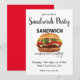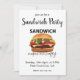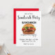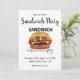 Convite de festa "Sandwich Me Faz Feliz" criado por Nisha Prabhu. Ilustração gráfica de sanduíche delicioso e saboroso com tipografia divertida. Totalmente personalizável. Personalize com seus detalhes. Prepare-se para espalhar a alegria com o nosso Convite de Festa "Sandwich Me Faz Feliz"! Este convite divertido e festivo é a maneira perfeita de definir o tom para sua próxima reunião. Se você está organizando uma festa temática de sanduíches ou simplesmente quer compartilhar seu amor por sanduíches com amigos e familiares, este convite certamente vai deixar todos animados. Com seu design colorido e mensagem divertida, é uma ótima maneira de informar aos seus convidados que bons momentos e sanduíches deliciosos estão no cardápio. Faça sua festa se destacar com este convite alegre e convidativo que fará com que todos contem os dias