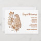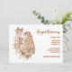 Um belo Henna inspirou design gráfico de um casal de noiva indiano. A noiva e o noivo estão ao lado uns dos outros, olhando para baixo e vestindo roupas tradicionais. Ambos são feitos de espirais florais; tangerás e flores de lótus. O gráfico é definido sobre um fundo branco que contém modelos de texto marrom para sua redação personalizada. Este convite minimalista, simples mas notável é ideal para qualquer Sangeet; Hindi; Hena; Mehndi ou Mhindi.