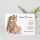 Um belo Henna inspirou design gráfico de um casal de noiva indiano. A noiva está atrás do noivo e tem a mão colocada no ombro com a cabeça encostada na parte de trás da cabeça. Ele está vestindo roupas tradicionais e tem os olhos fechados. Ambos são feitos de espirais florais; tangerás e flores de lótus. O gráfico é definido sobre um fundo branco que contém modelos de texto marrom para sua redação personalizada. Este convite minimalista, simples mas notável é ideal para qualquer Sangeet; Hindi; Hena; Mehndi ou Mhindi.
