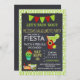 Um convite festa de solteira divertido. O padrão de fundo é um padrão de espirais de verde limão. O convite é decorado com ilustrações de um tema mexicano. Limão margarita, guitarra mexicana, cacto vestindo chapéu mexicano, tacos, guacamole e molho quente. Com um banner verde e vermelho no topo.