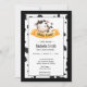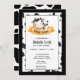 Chá de fraldas de Vaca Bonita Convite para um menino ou menina com um adorável bezerro dormindo em uma faixa amarela. Adicione os detalhes da sua festa para esta celebração muito especial. Excelente para um chá de fraldas temático fazenda,