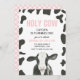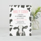Santa Vaca! Vaca aqueira com impressão de vaca e xadrez cor-de-rosa com convite de aniversário dorsal.