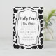 É uma vaca sagrada, sou um design de convite de aniversário. Ele tem belos textos de script tipográfico e todos os textos são facilmente personalizáveis. É perfeito para o primeiro aniversário.