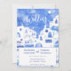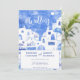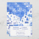 Uma pintura aquosa moderna da cidade pitoresca de Oia, na ilha grega de Santorini, para celebrar seu amor com um toque de elegância e beleza. Inspirados pelas impressionantes vistas da ilha, esses convites apresentam uma pintura aquosa mesmerizante de Oia em tons azuis e brancos sonhosos. Perfeito para um casamento de destino, esses belos convites vão dar o tom para seu dia especial e garantir que seus convidados estejam contando os dias para sua comemoração inesquecível na Grécia. Arte original de Nic Squirrell.