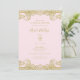 Convite Sapatilha Rosa e Renda Dourada Elegante Chá de Noi