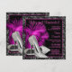 Convite de aniversário de cinquenta anos para a mulher com sapatos pretos elegantes e de salto alto com purpurina rosa quente. Este convite de aniversário preto e rosa é facilmente personalizado para o seu evento, basta adicionar os detalhes do evento, estilo de letra, tamanho e cor da letra e texto.