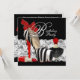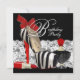 Convite de festa elegante de zebra vermelha. Este lindo convite de festa de zebra vermelha apresenta um fundo de renda preto e branco, sapato preto de salto alto em forma de zebra, frasco de perfume e batom vermelho. Este convite de festa de aniversário elegante e divertido de sapato de salto alto de zebra vermelha é facilmente personalizado para o seu evento, bastando clicar no botão "Personalize!" para começar a adicionar os detalhes do seu evento, estilo de fonte, tamanho e cor da fonte e texto. Por favor, note que todos os cartões e desenhos de convite que você encontrará na Zazzle são gráficos impressos sem joias, laços, relevos, rebaixos ou peças ou partes adicionadas.