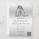 Convite de festa de solteira prateado lindo com QR CODE. A imagem principal é um par de sapatos de salto alto prateados cintilantes e glitzy bonitos e sofisticados. Elegância prateada romântica para o seu evento especial com brilho e glamour. Fashion e sofisticado para mulheres. Todo o texto, fonte e cor da fonte são totalmente personalizáveis para atender às suas necessidades. Se você precisar de ajuda para personalizar ou quiser produtos combinando, por favor entre em contato comigo através da minha loja e ficarei muito feliz em ajudá-lo.