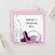 Sapatos de salto alto rosa e preto elegantes, bolsa, convites de festa de aniversário de mulher com confete e champanhe. Este convite de festa de aniversário com design rosa e preto é ótimo para uma festa de 21 anos, 30, 40, 50, 60, 70, 80 anos ou qualquer idade, convite de aniversário de mulher! Adicione seus detalhes na frente e/ou no verso simplesmente escolhendo o botão laranja "Personalize!" para começar a adicionar os detalhes do seu evento, estilo de letra, tamanho e cor da letra e texto. Por favor, note que todos os designs de convites que você encontrará no Zazzle são gráficos impressos em papel liso sem joias, laços, relevos, rebaixos ou peças ou partes adicionadas.