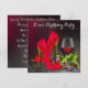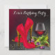 Convite de festa de aniversário de vinho tinto com sapatos vermelhos de salto alto. Este lindo convite de festa de aniversário de vinho tinto é facilmente personalizado para o seu evento. Por favor, note que todos os desenhos de convite que você encontrará no Zazzle são gráficos impressos sem joias, laços, relevos, rebaixados ou peças adicionadas.