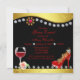 Elegante Cartão de Convite Personalizado Sapatos Vermelhos, Vinho & Joias para Qualquer Evento ou Ocasão. Pode ser usado para chá de noiva, aniversário, formatura e muito mais. O design tem brilho colorido, cristais, brilho, flor, copo de vinho com fundo preto e dourado. Perfeito para quem ama brilhos e faíscas!