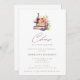 Alega um novo Chá de panela do Capítulo Vinho e Livros com uma composição aquosa de uma garrafa de vinho, vidro, livros e flores. "Cheers" está em masala, moderna letra de mão.