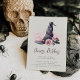 Aloja uma noite de meninas espetaculares em nossa noite de senhoras com suas bruxas favoritas. Este convite de festa chic Halloween assustador apresenta uma bruxa de aquarela que ilustra decorada com flores rosas e roxas. "Saúde, Bruxas" ou sua escolha de texto aparece abaixo. Personalize este convite exclusivo para o Dia das Bruxas com os detalhes do seu partido.