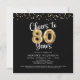Saúde para 80 anos de Foto Colagem Balão Negro Dourado Convites de Aniversário. Comemore um 80 com esses convites de festas elegantes e festivos com 8 fotos, o título CHEERS TO 80 ANOS com números falsos de balões metálicos de ouro e confetti e tipografia moderna de escrita na sua escolha de cor de fundo (mostrada a preto). ASSISTÊNCIA: para obter ajuda com a modificação ou personalização do design, transferir o design para outro produto ou, se você quiser coordenar itens, entre em contato com o designer ANTES de fazer o pedido via Chat Zazzle ou email makeitaboutyoustore@gmail.com.