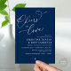 Anuncie a sua alegria para sempre em estilo com o nosso moderno marinho azul-tema dos casais (Saúde para amar) Cartões de convite para celebração de chás. Com seu design sofisticado, mas lúdico, este convite certamente define o tom de um evento inesquecível. A carta de convite apresenta um moderno design de escrita romântica minimalista, acrescentando um toque de elegância eterno à sua celebração. Projetado por TeeshaDerrick