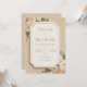 Set a tone of understated luxury with this refined stationery design. The invitation features a distinctive "ticket-style" shape with inverted rounded corners, framed by a double-line border in antique gilded tones. Elegant floral arrangements grace the top left and bottom right corners, showcasing full, beige roses and crisp white dahlias or zinnias. These neutral blooms are paired with soft sage foliage, creating a timeless and sophisticated look against the textured background. This neutral and classic design is a flawless choice for a vintage garden wedding, a sophisticated bridal shower brunch, or a formal engagement party. You might also select this elegant aesthetic for a milestone anniversary dinner, a tasteful baby shower, or a professional corporate event invitation.